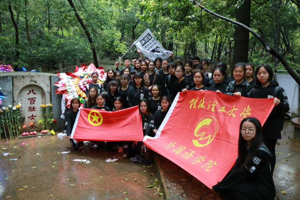 2019年3月31日,由中国宋庆龄基金会忠魂公益基金、中华社会救助基金会关爱抗战老兵公益基金主办的2019春祭大型祭拜活动在桂林市七星公园隆重举办。为响应团中央号召,依托各地抗战教育资源,在庄严肃穆的仪式中接受“沉浸式”精神洗礼,太阳集团城网站2017外国语学院希望联盟积极组织外国语学院共青团员参与此次公祭活动,外国语学院希望联盟指导老师梁天秦老师带队参与本次活动。铭记历史,缅怀抗战英烈,传承抗战精神文化。