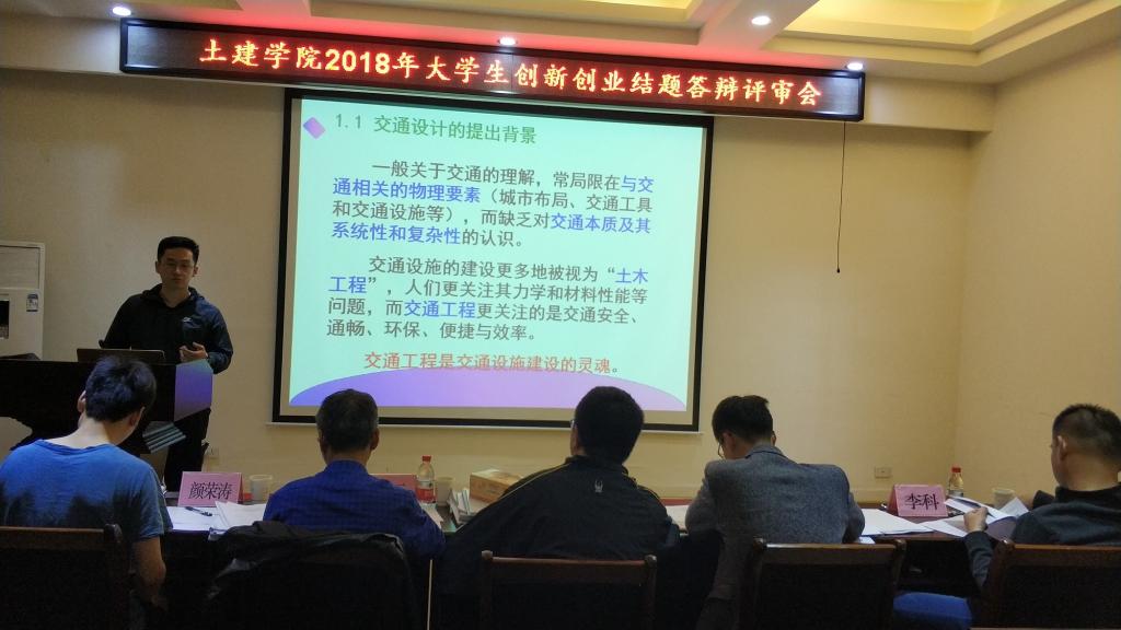 4月17日晚,土木与建筑工程学院在4204会议室举行大学生创新创业训练计划项目2018年结题评审答辩会。此次评审答辩会议,对我院2018年立项,研究时间已到期大创计划项目进行结题验收,由学院工民建教研室主任刘其舟、岩土教研室副主任颜荣涛、道桥教研室副主任卢春玲、工程管理教研室副主任李科、地下工程教研室肖桂元老师联合组成了评审答辩专家组。学院2018年立项的国家级和自治区级的各个项目组参加了此次评审答辩会。