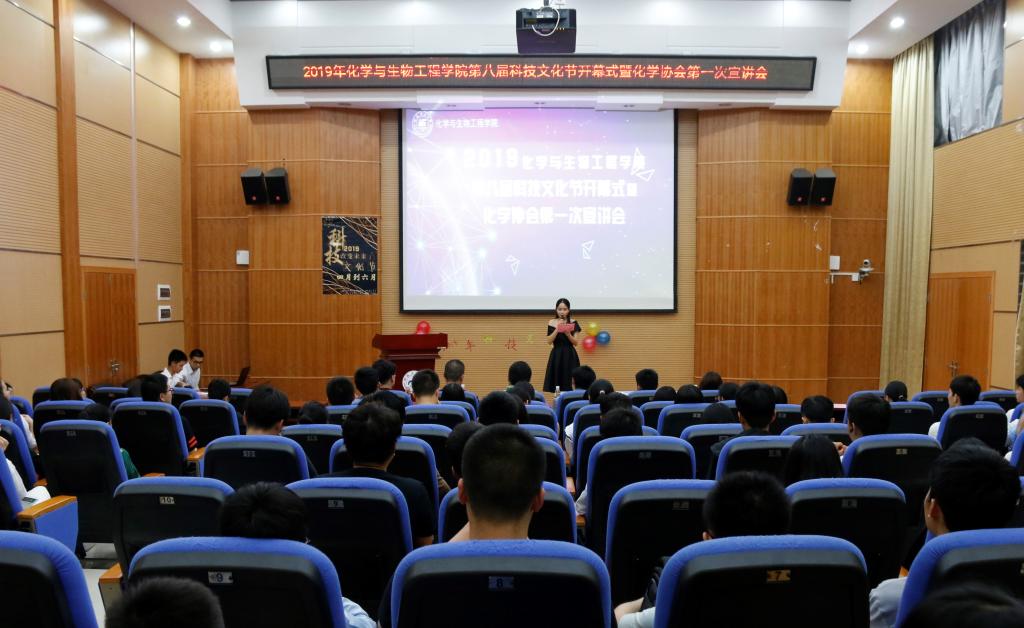 为鼓励广大学生踊跃参加课外科技活动,提高化学协会在学校的影响力。4月19日,化生学院于萃华楼学术报告厅举行了第八届科技文化节开幕式暨化学协会宣讲会。学院院长助理侯士立,硕士生导师闫力强,学生工作办公室全体专兼职辅导员及团委.学生会学生骨干参加了此次活动。