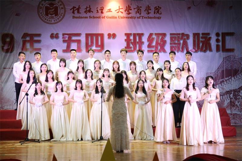 扬青春风采,传五四精神。为纪念“五四”运动100周年,庆祝新中国成立70周年,商学院分别于4月20日和4月21号在雁山校区体育馆和屏风校区南礼堂分别举办了2019年“五四”班级歌咏汇暨2018级班团文化设计大赛。商学院党委副书记沈菲菲、学工组组长曾丽萍、团委副书记施林劼、各年级辅导员以及各兄弟学院的学生骨干代表出席了本次活动并担任比赛评委。