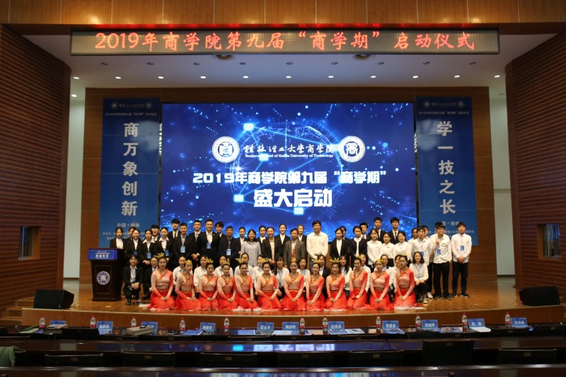 2019年4月19日15:00,商学院第九届“商学期”启动仪式在屏风校区图书馆报告厅隆重举行,商学院党委书记周章明、党委副书记沈菲菲、副院长蒙永亨、副处级组织员黎超业、院长助理梁健爱、实验室主任王兴中及全体学工人员出席本次活动。