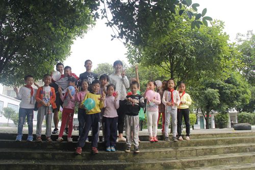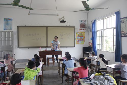 活动伊始,志愿者们按照事先分好的小组,在六塘大中小学老师的带领下到不同的班级上课。课堂上,志愿者首先为同学们介绍了我国传统节日的民俗习惯,并与同学们进行了答题互动,课堂氛围活跃。随后,志愿者带领同学们来到操场上一起玩“顶气球”、“抢凳子”、“萝卜蹲”等有助于培养团队协作和个人反应能力的小游戏。同学们在游戏过程中表现积极主动,相互配合。最后,志愿者向同学们介绍了“五四运动”的由来,并现场教唱歌曲《中国少年先锋队队歌》和《光荣啊,中国共青团》。