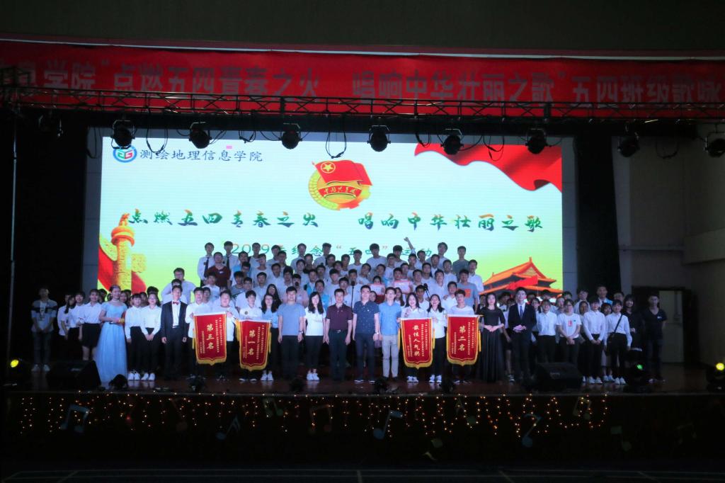 活动开始前,参赛班级秩序井然,整齐候场。此次比赛歌曲类型有寄梦想于未来的《明天会更好》、《我和2035有个约》;有饱含爱国深情的《国家》、《大中国》、《强国一代有我在》……演唱中,每个班级特色鲜明、形式多样,有的班级还加入了朗诵、舞狮等表现形式。现场气氛活跃,观众不时发出雷鸣般的掌声。经过激烈角逐,测绘18—实验班的《渴望光荣》以93.25分的优异成绩荣获本次比赛第一名,测绘17-实验班获得第二名,测绘18-3班获得第三名,地信17-2班、测绘17-2班、测绘17-1班、遥感17-1班、测绘18-4班荣获优秀奖。在最佳人气奖的比拼中,遥感17-1班最终拔得头筹。地信17-2班的张彩娟同学凭借良好的台风,优美的动作获得评委的一致好评,最终将最佳指挥奖收入囊中。