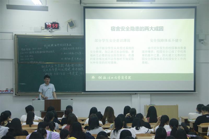 为进一步增强商学院学生安全防范意识、提高自救能力,5月12日晚,商学院于屏风、雁山两校区同时开展火灾安全教育大会,由各年级辅导员老师主持,各年级学生分批次参加本次大会。