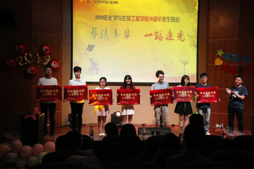 晚会伊始,饶筠筠老师上台致辞,对毕业生们深切寄语:一是工作要耐得住寂寞,受得住辛苦;二是科研要有批评思维与试错的毅力;三是生活要学会豁达与乐观。随后优秀毕业生代表李云凯同学上台发言,言语中饱含对学院的不舍与奋战新征程的斗志。在表彰环节,学院为考取2019年研究生、2019届优秀毕业生先后进行了颁奖。