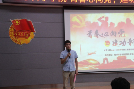 活动伊始,宝石18-4班及物探创新班18级的同学们表演了精彩的诗词朗诵《祖国啊!我亲爱的祖国》,表达了对祖国的热爱之情。随后,同学们积极参加红歌知识竞猜,通过“听”红歌加强了对革命红歌的了解。全体成员重温入团誓词,再一次将团员誓言牢记在心。最后,宁乃向老师总结讲话,希望大家不忘国耻,传承和发扬五四精神,并提倡同学们在生活中践行“吃苦在前,享受在后”的精神,做好模范带头作用。