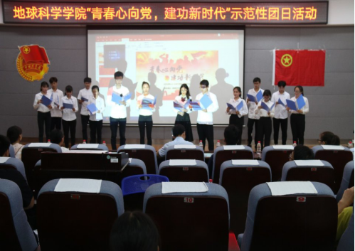 为纪念五四运动一百周年,鼓励大学生传承五四精神,跟随党的脚步,弘扬党的精神。6月18日晚,太阳集团城网站2017在雁山校区01501报告厅开展了以“青春心向党,建功新时代”为主题的示范团日活动,地球科学学院团委副书记焦艳、宁乃向出席,各学院团委学生代表参加了本次活动。