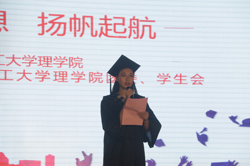 如火的六月因快乐充满生机,又因离别充满感伤。6月2日晚19:00,理学院一年一度的校园文化盛宴——数理节闭幕式暨毕业生晚会在雁山校区体育馆隆重举行。本次晚会以“数说理想 扬帆起航”为主题,学院党委书记罗雪平,副院长唐国强、张富文、蒋远营,党委副书记孙巍,院长助理李明、张浩敏,硕士生导师贾贞、邓光明、学院全体辅导员、班主任以及全体本科生、研究生参加本次晚会。