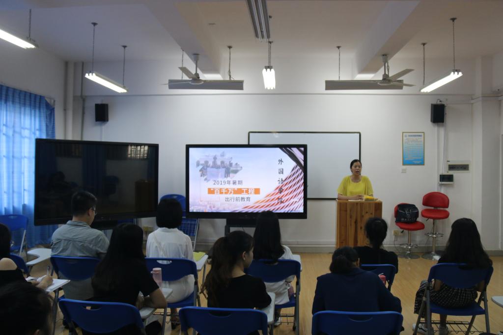 7月4日中午12点10分,外国语学院于雁山校区4栋教学楼顺利召开2019年暑期“百千万”工程出行前教育会议。外国语学院党委副书记邓洁琼、团委书记钟立军以及2018级辅导员梁璇出席本次会议,学院“百千万”工程各项目成员参加会议。
