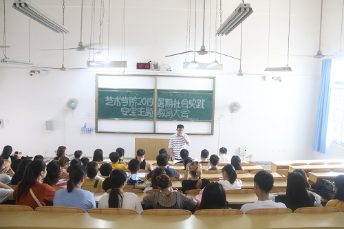 艺术学院党委书记白凌婷、艺术学院院长李本建等领导与带队教师和实践团成员代表们在博雅楼会议室召开了工作部署会议,强调了实践的目的、意义和要求;学院党委副书记苑守瑞组织全体成员召开了安全教育主题会议。