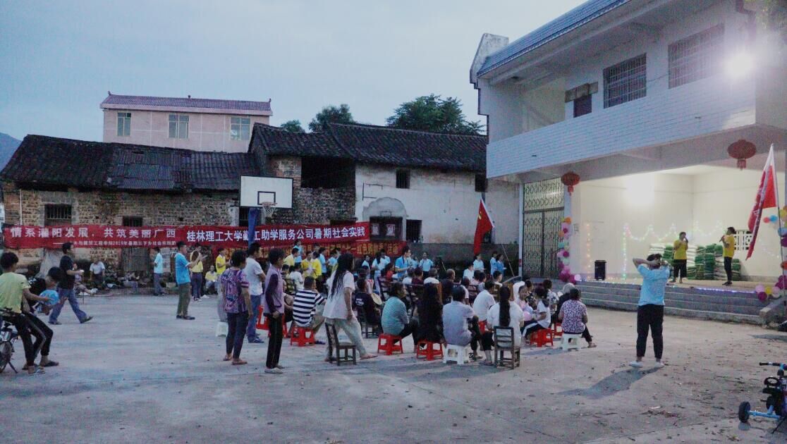 7月15日,学院“情系灌阳发展,共筑美丽广西”暑期社会实践团在灌阳县新街镇三树村委会进行支教绘画活动,在三树村委会广场举办三下乡文艺晚会。