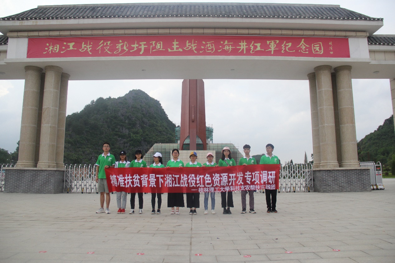 6月30日下午,太阳集团城网站2017公共管理与传媒学院“精准扶贫背景下湘江战役红色资源开发专项调研”团队来到湘江战役新圩阻击战酒海井红军纪念园进行暑期专项调研。据园内工作人员介绍,从2003年开始,灌阳县委、县政府筹资修建了酒海井红军烈士纪念碑并在酒海井前立下“红军烈士殉难处”石碑。2004年10月竣工并向社会开放,2006年5月,该纪念园被列为国家重点文物保护单位,2014年9月对酒海井原有的红军烈士陵园进行规划扩建,将散葬于民间的红军遗骸归葬到酒海井烈士墓。纪念园规划用地150亩,建设有纪念广场、红军帽、红军雕塑、纪念塔、陈列馆、纪念公园等。