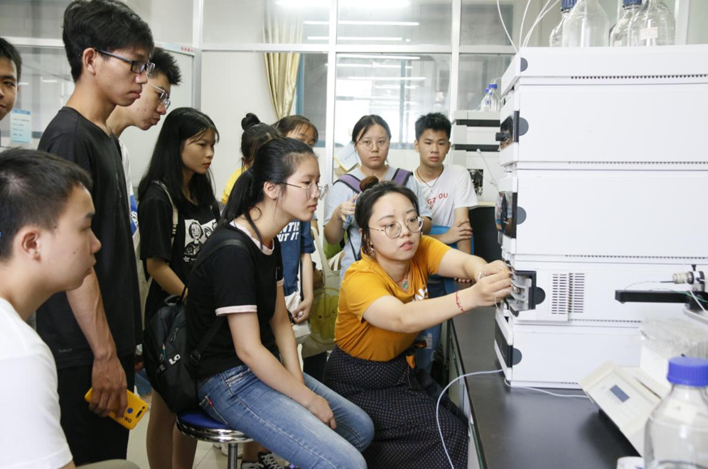 本次成果展共分为师生发明专利、学科竞赛作品、大学生创新创业成果、第九届“挑战杯”区级竞赛获奖作品、第五届中国“互联网+”大学生创新创业大赛区级选拔赛获奖项目5个展区。其中,“互联网+”展区展示了化生院在第五届中国“互联网+”大学生创新创业大赛广西区选拔赛3金1银3铜历史最好成绩项目。在活动中,学院教师与学生讲解员带领2019级新生认真参观了成果展区和各专业实验室、模拟工厂等双创科研平台。同时,他们也向新生们介绍了学院创新创业和实践平台的基本情况,详细讲解了当前学校开展双创活动的申报流程以及相关政策,鼓励广大一新生在完成学业之余,立足专业,勇于创新。