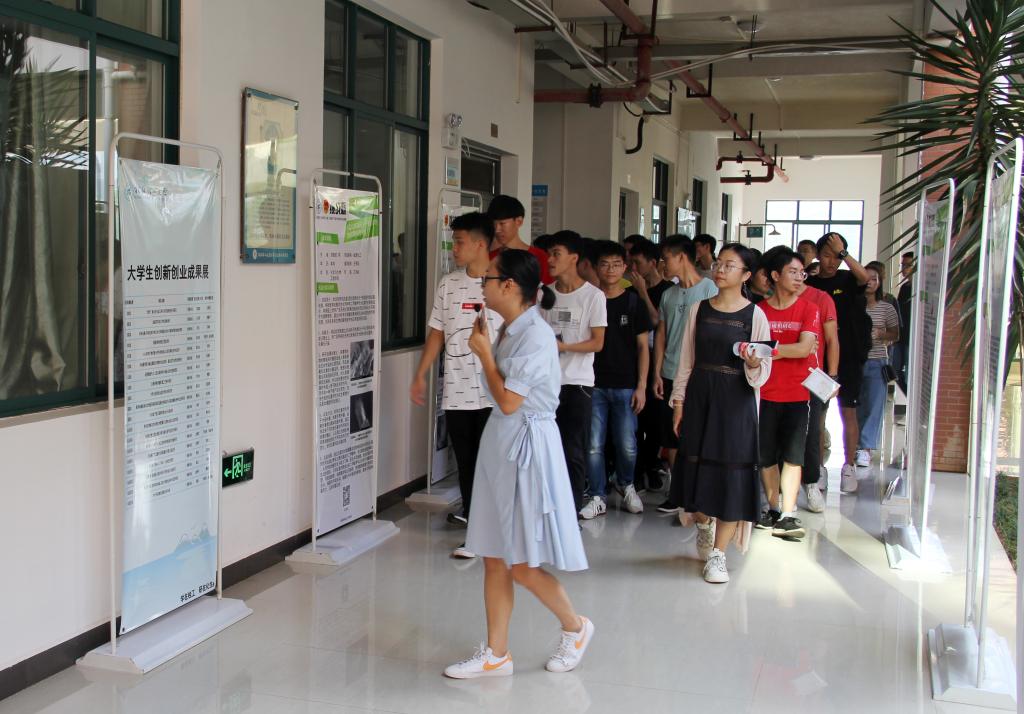 为进一步推进学院创新创业教育和创业项目孵化工作,展示近年来学院在大学生创新创业方面取得的成果,9月12日,化生学院在雁山校区萃华楼一楼大厅举办大学生创新创业成果展暨2019级新生创新创业启蒙教育活动。化生学院2019级全体新生参加了此次活动。