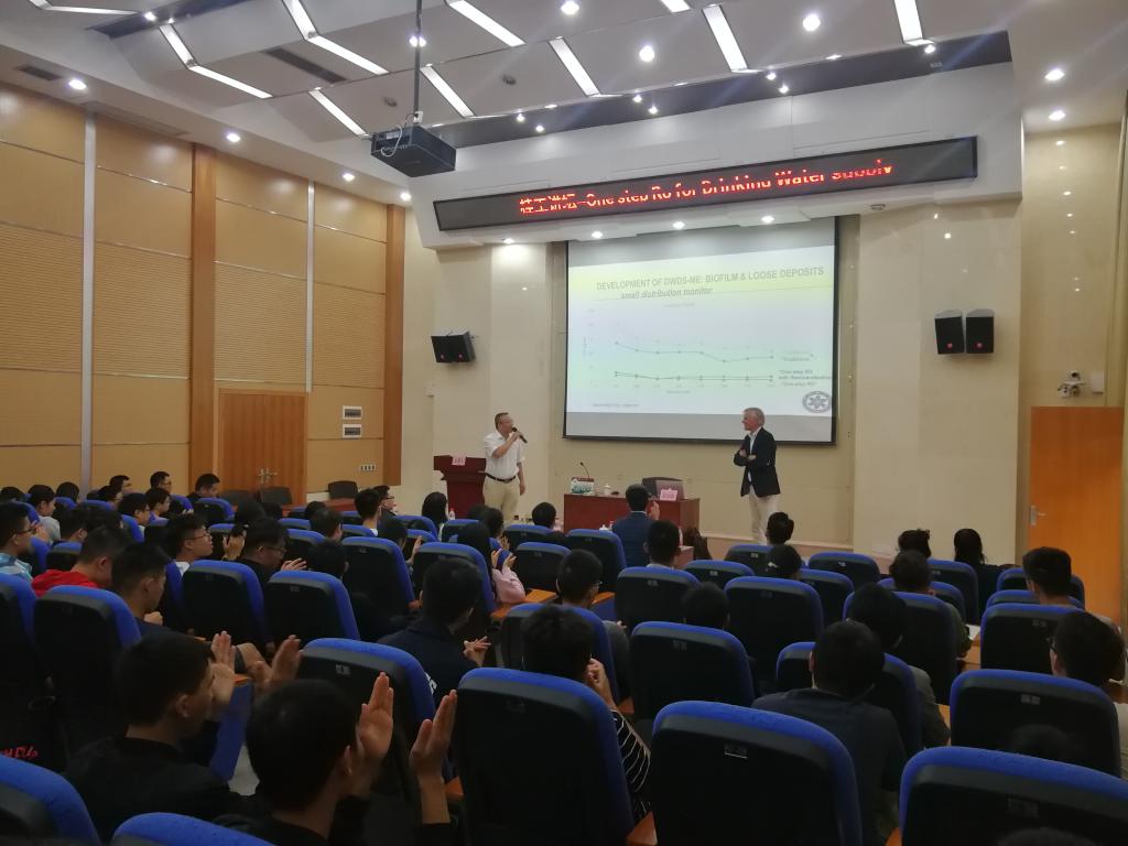 2019年10月14日上午,荷兰代尔夫特理工大学、特温特大学教授、奥森水务集团首席执行官、荷兰水务专家--Walter van der Meer教授在中科院生态中心研究员刘刚的陪同下应邀做客桂工讲坛,在太阳集团城网站2017萃华楼报告厅做了题为“One-Step-RO for drinking water supply” 的学术讲座,讲座由学校王敦球副校长主持,环境学院负责人和青年教师以及学院研究生、本科生聆听了本次讲座。