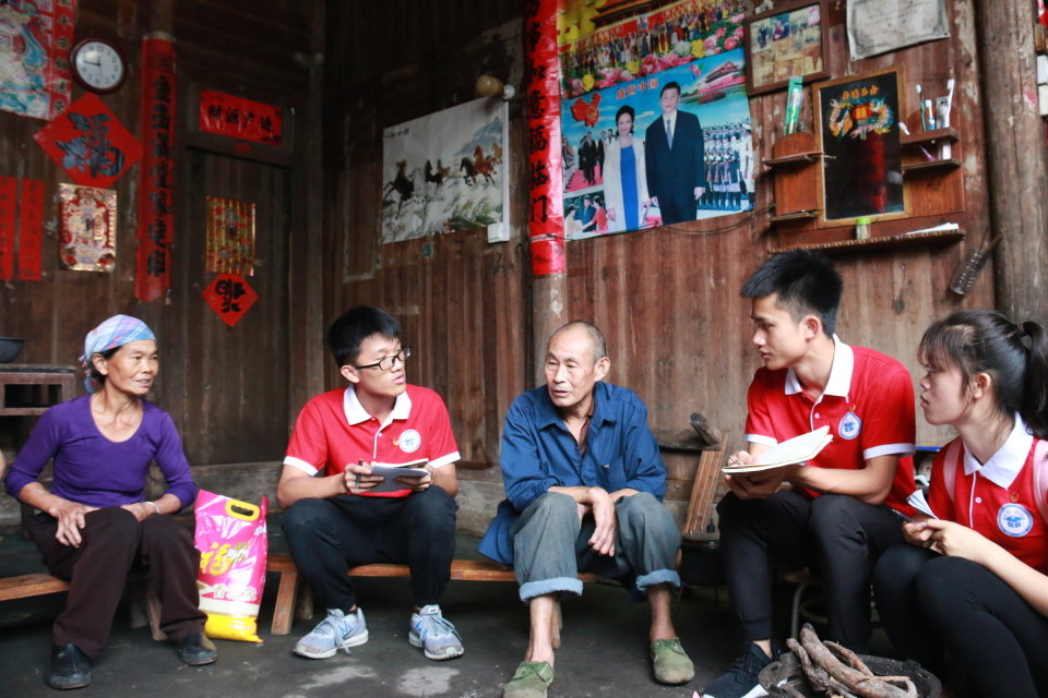 实践团成员在向村民进行问卷调查