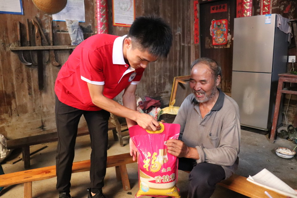 实践团成员为老人送上慰问品