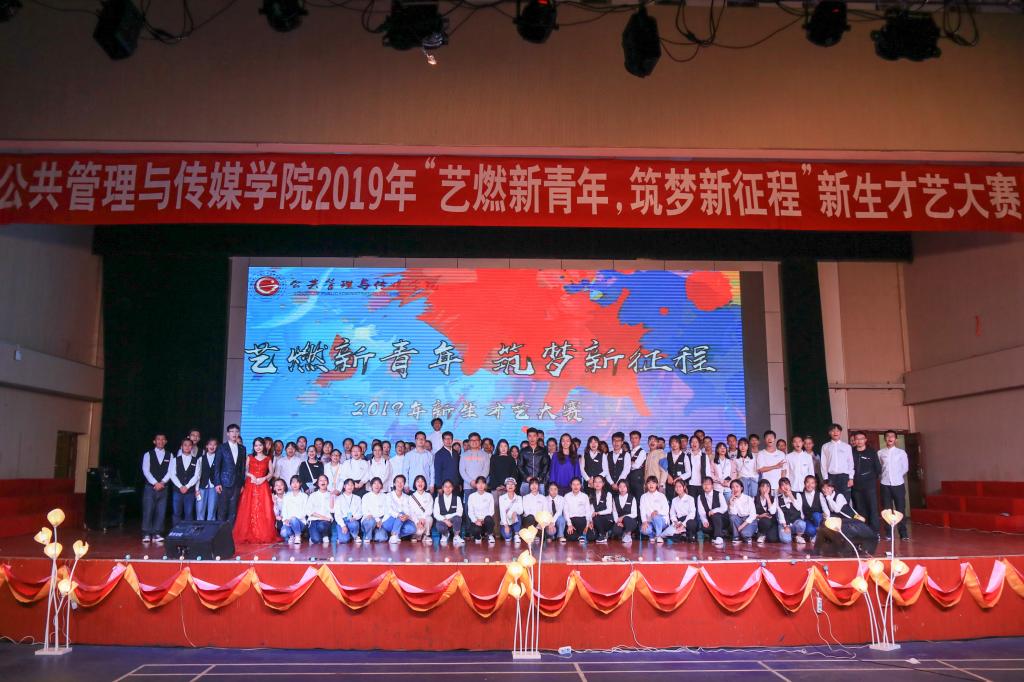 为共庆祖国70华诞,展现公共管理与传媒学院新生风采与新一代年轻人的朝气蓬勃与青春活力,公共管理与传媒学院于11月2日晚在体育综合训练馆成功举行了主题为“艺燃新青年,筑梦新征程”2019年新生才艺大赛决赛。学院党委副书记杨晓、团委书记石习杰、学工办老师及新生班主任出席本次比赛并担任评委,2019级全体新生到场参加。