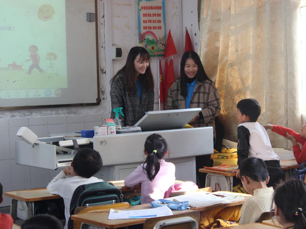 当天下午两点,学生志愿者经过简单的熟悉校园和任务分配后,支教活动就有序的拉开了序幕。志愿者分成了四组队伍,分别面向一年级1班,一年级3班,三年级1班和四年级2班。开始时,小朋友们略显羞涩,在志愿者讲解环保PPT并一起观看环保动画视频后,小朋友们热情高涨,与志愿者们的相处更加融洽。随后,志愿者们对小朋友进行了一问一答的环保知识游戏,对回答问题的小朋友分发了小礼品。在举手抢答的过程中,小朋友们对垃圾分类、保护环境有了进一步的认知,学到了丰富的环保知识。为使环保理念“袋袋”相传,志愿者们发放了我院专属环保小黄袋,并和小朋友们进行了合影留念。