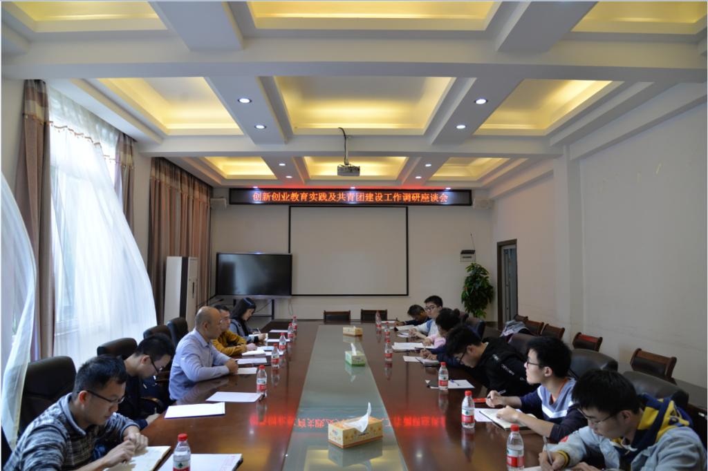2019年12月16日下午,学校校团委书记李雨、副书记饶蠡、刘茜文一行五人来到土建学院开展创业教育实践及共青团建设工作调研。学院副院长余文成、副书记唐丽华、学院团委书记姚慧及优秀指导老师、辅导员、相关学生代表参加会议。学院团委书记姚慧主持会议。