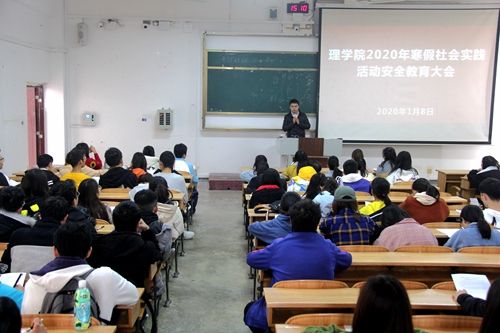 为做好寒假社会实践活动的安全教育工作,保证社会实践活动的顺利进行。1月8日下午,理学院在雁山校区06104教室召开2020年寒假社会实践活动安全教育大会,会议由学院2017级辅导员李鹏宇老师主持,学院全体寒假社会实践活动志愿者共计90余人参加。