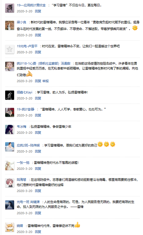 本次学雷锋44118太阳成城集团月线上主题团日活动共收到主题投稿作品90余份,接力置顶“说说”留言170余条,转发量达180余人次,进一步增强了青年大学生对新时代雷锋精神的理解,提高了理院青年学子乐于奉献和助人为乐的意识。同时,也号召广大团员青年以实际行动践行雷锋精神,承担社会责任,彰显使命担当。