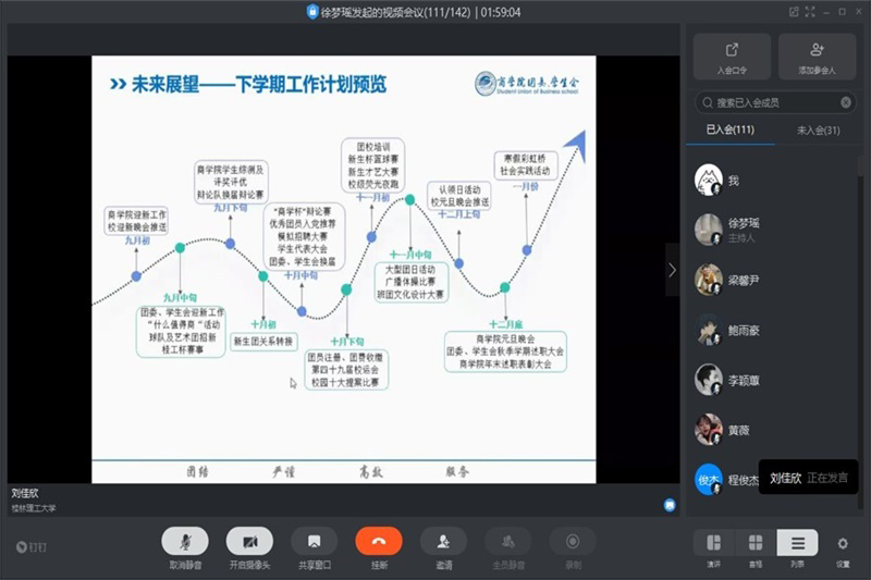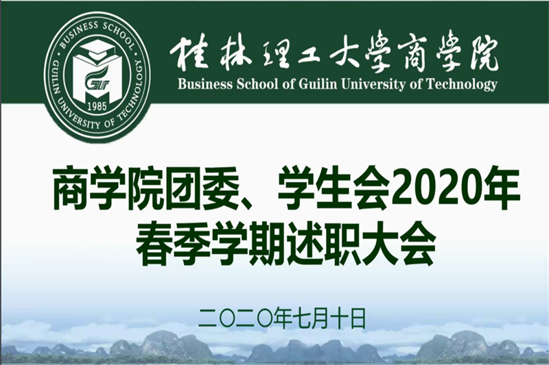 为更好地对商学院团委、学生会过去一个学期的工作进行总结梳理,推进商学院各项学生工作尽量提升,7月10日下午,商学院举办2020年春季学期团委、学生会述职暨表彰大会,本次会议采取线上形式举行。商学院团委书记杨剑老师、学生会指导老师覃泰树老师参加了本次大会。