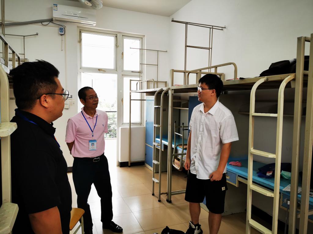 9月11日下午,化学与生物工程学院迎新工作正式启动,学院迎新工作小组人员提前布置迎新场地,备好迎新物资,按照防疫要求做好新生报到的准备工作,确保提前到校的新生可以入住宿舍。9月12日,化生学院党委书记梁军、副院长刘勇平分别带队全体新生班主任,走访新生男女宿舍,第一时间了解新生们的基本情况和宿舍条件,叮嘱新生要认真学习,养成良好的生活习惯,有困难及时向学院老师反馈。