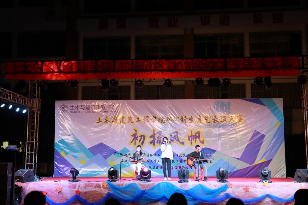 为培养学院2020级新生艺术思维,增强新生的团结协作意识,10月17日晚,土木与建筑工程学院在雁山校区三号广场举办2020“初扬风帆”新生才艺大赛。学院党委副书记唐丽华、学工组组长夏勇超及各年级辅导员参加活动并担任此次大赛的评委,500多名学院新生参加。