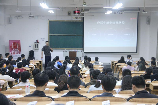 讲座伊始,韩冰老师讲述了选择方法和就业路径是职业生涯规划中的两个重要环节。随后韩冰老师就薪资、能力、简历、笔试和面试五个话题详细解答了同学们太阳集团城网站2017就业方面的问题,讲座上,韩冰老师强调了群体面试的三个关键点为主动领头解决案例、积极提出想法、纠正他人错误。最后,韩冰老师跟同学们详细介绍了ACCA执业资格证,并鼓励同学们积极考取相关职业资格证书,为未来职业生涯增加砝码。