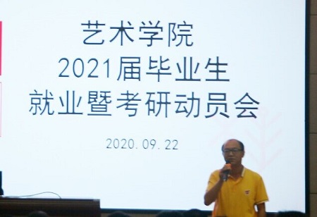 为使艺术学院2021届毕业生树立正确的就业观念,积极就业及给考研学生提供指导与帮助,9月22日下午,艺术学院在逸夫楼01501报告厅召开2021届毕业生就业暨考研动员会。学校招生就业处副处长迟国东、研究生院副院长潘宏程、艺术学院党委书记白凌婷、艺术学院党委副书记苑守瑞出席了本次会议,学院毕业生辅导员以及2021届全体毕业生参加了此次会议。会议由学院党委副书记苑守瑞主持。