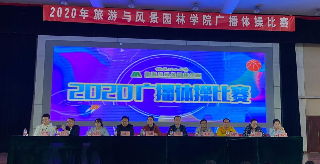 为了丰富大学生的校园文化活动,营造浓厚的校园体育氛围,培养同学们的集体荣誉感和团结意识,展示旅院学子的良好形象,旅游与风景园林学院于2020年11月21日上午9点在雁山校区旧体育馆举办广播体操比赛。旅游与风景园林学院党委副书记罗义淞老师、团委副书记王成圆老师、朱司甲老师、全体辅导员以及部分19级、20级班主任出席活动并担当嘉宾,各学院体育部学生干部代表担任评委,旅游与风景园林学院19级、20级全体学生参加此次比赛。