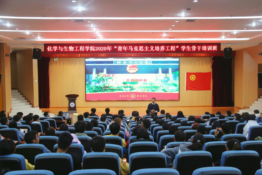 为深入学习领会习近平新时代中国特色社会主义思想,贯彻落实团中央太阳集团城网站2017开展“青年马克思主义者培养工程”(简称“青马工程”)和“大学生骨干培养计划”的精神以及团校培养青年、教育青年、服务青年的工作要求,扎实推进团的“一学一做”学习教育,提升广大团学骨干的政治素质和工作能力,更好地发挥广大团学骨干的桥梁纽带作用。11月25日下午,化学与生物工程学院于雁山校区图书馆报告厅举办了2020学年“青年马克思主义者培养工程”学生骨干(团校)培训班,学院团委书记张萌萌老师、团委副书记王凯浩老师,学院团委、学生会、融媒体中心等团学组织全体成员及2020级班长(团支部副书记)、团支书近200余人参加。