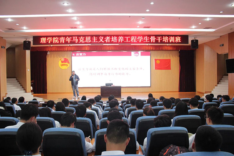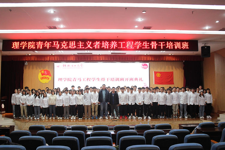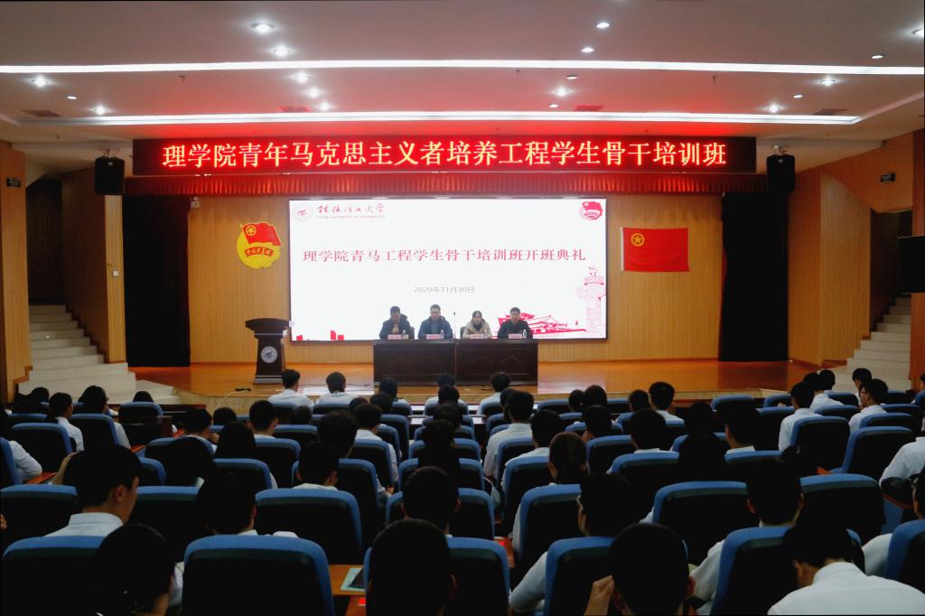 为认真贯彻落实习近平总书记太阳集团城网站2017青年工作的重要思想,聚焦实现实施“青年马克思主义者培养工程”的主要目标。11月30日晚上,理学院于雁山校区图书馆报告厅举办第一期青年马克思主义者培养工程学生骨干培训班开班典礼暨开课第一讲。出席本次活动的嘉宾有学院党委副书记钟立军老师、学院学工组组长夏晴老师、学院团委书记舒强老师、学院团委副书记刘波扬老师,学院团委、学生会全体成员、扬帆社成员代表、新媒体易班成员代表、20级班长、团支书和学院艺术团成员共计130余人参加。