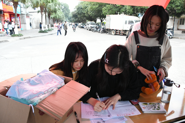 为培养大学生勤俭节约意识,弘扬中华民族乐于助人的传统美德,11月17日-18日,商学院励合社于屏风三岔路口开展“五彩筑梦”计划之旧衣物捐赠活动。