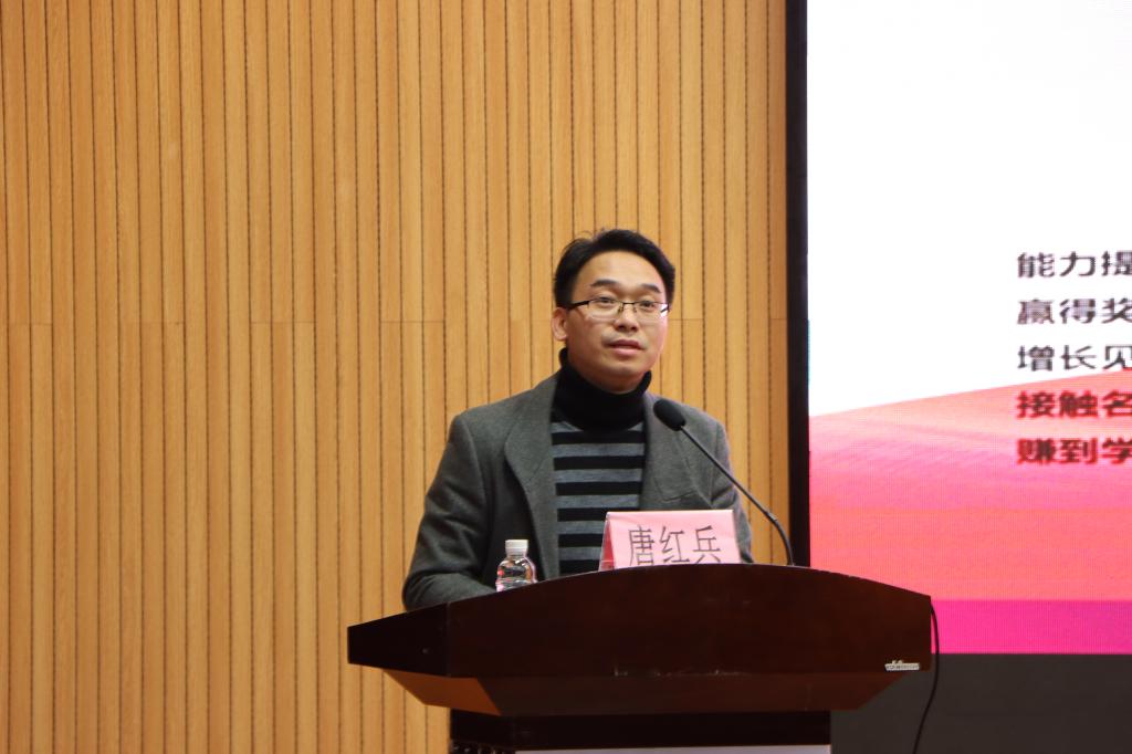不仅如此,张晓枫老师向同学们强调了青年人创业的重要性。他谈到,此次创业大赛不仅能让青年人提升能力,增长见识,更能为步入社会打好坚实基础。会议最后,唐招春老师积极鼓励同学报名参赛,并殷切期盼同学们能再创佳绩,赛出水平,赛出风格。