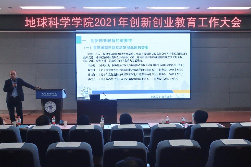 2021年3月16日,地学院在雁山校区01501会议室举办2021年创新创业教育工作大会,教务处处长游少鸿,校团委书记李雨,土木与建筑工程学院朱万旭教授出席,学院领导班子和全体教师参加会议。