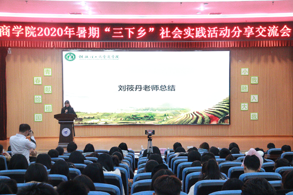 本次分享交流会展示了商学院2020年暑期“三下乡”社会实践活动取得的优秀成果,激励商学院学生在社会实践活动中开阔视野,增长才干,将青春之我融入时代发展之中。