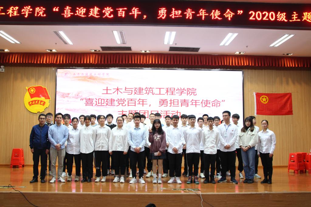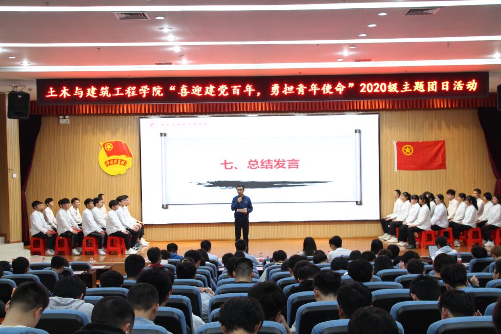 为学习中国共产党波澜壮阔的革命历史,重温革命精神,4月20日由土木与建筑工程学院土木类2020-1班团支部和土木类2020-4班团支部承办的“喜迎建党百年,勇担青年使命”主题大型团日活动在雁山校区图书馆报告厅举行,土木与建筑工程学院团委副书记安邦国老师、2020级辅导员谢基柱老师、唐子晴老师及同学代表参加了本次活动。