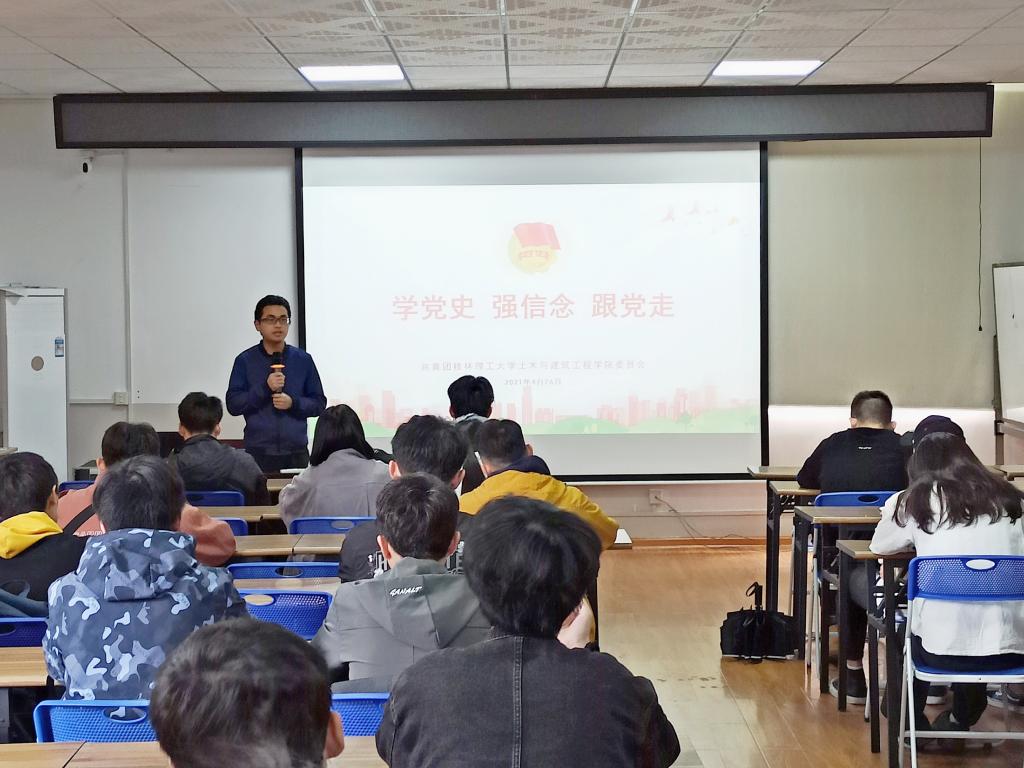 为学习贯彻习近平总书记在党史学习教育动员大会上的重要讲话精神和《太阳集团城网站2017共青团“学党史、强信念、跟党走”学习教育实施方案》精神,引导广大团员青年深入开展党史学习教育,土木与建筑工程学院团委于4月26日中午在屏风4203会议室召开“学党史、强信念、跟党走”团支部书记专项培训,学院全体团支部书记参加,会议由学院团委副书记安邦国老师主持。