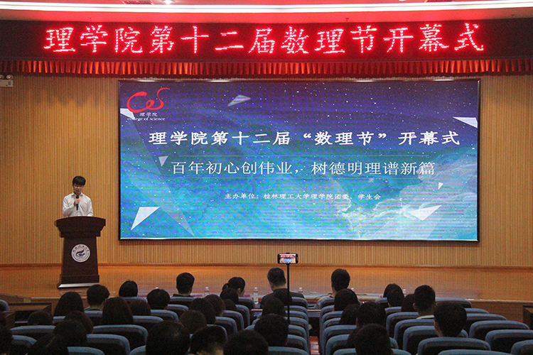为彰显数理文化,提高学生的数理素养。理学院于5月16日上午在雁山校区图书馆报告厅举行“百年初心创伟业,树德明理谱新篇”——理学院第十二届“数理节”开幕式。理学院党委副书记钟立军、学工组组长夏晴、团委副书记舒强、各年级辅导员及理学院150余名同学参加了本次活动。