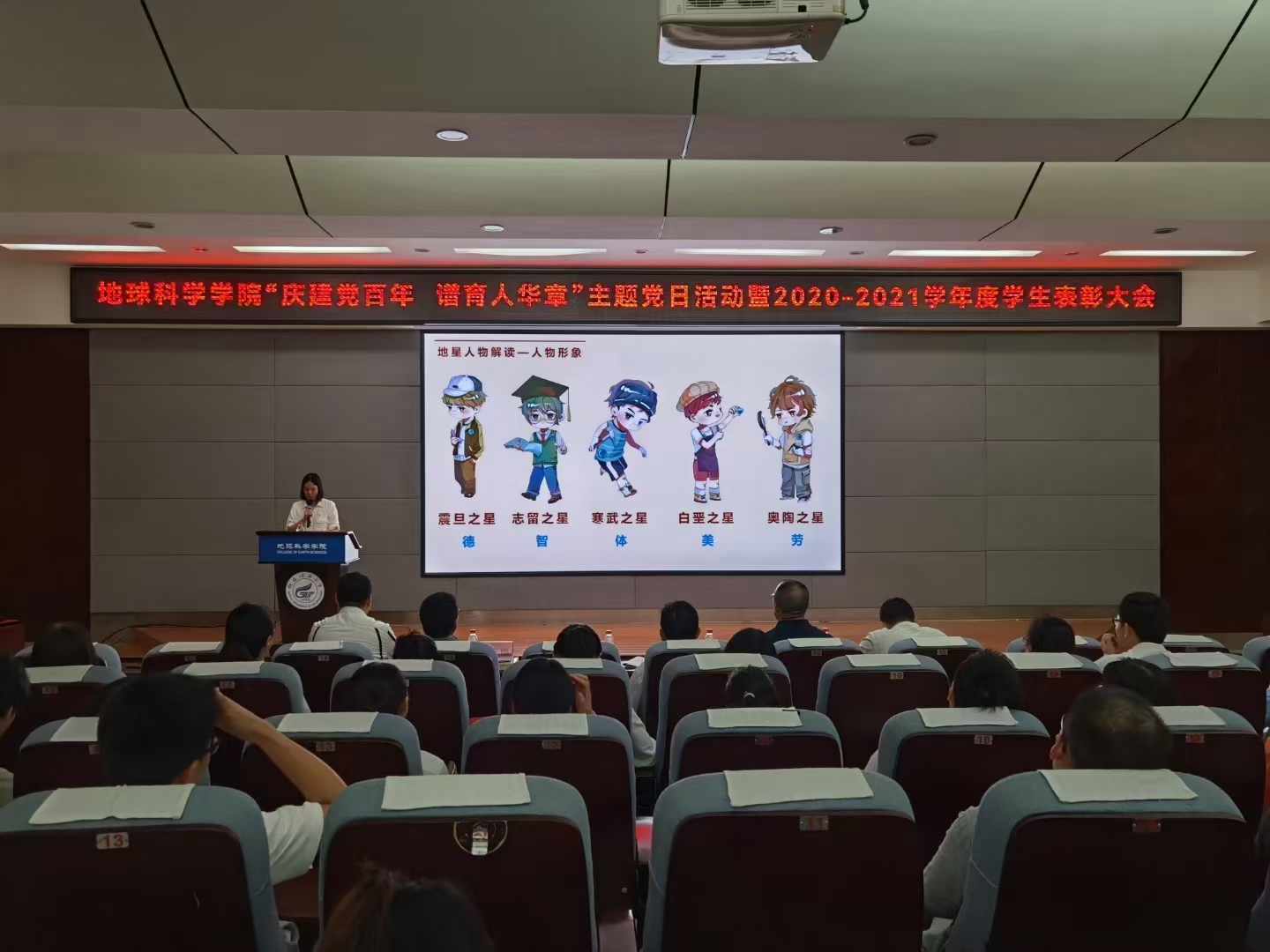 为热烈庆祝建党100周年,6月30日下午,地学院于逸夫楼01501报告厅开展“庆建党百年,普育人华章”主题党日活动暨2020-2021学年度学生表彰大会。学院党政领导班子出席,全体师生党员、获奖学生代表和入党积极分子代表,共300余人参加活动。