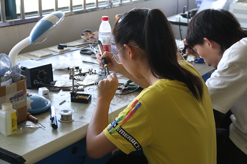 为提高同学们对专业知识学习的积极性,培养和提高创新意识,更加热爱科学、崇尚科学,了解更多的不曾知道的科技知识,机械与控制工程学院举办了以“兴起绿色科技革命,‘倡’响红色文化之歌”为主题的第九届科技文化节。制作音乐电平灯的比赛于6月6日下午在08410教室顺利举行。