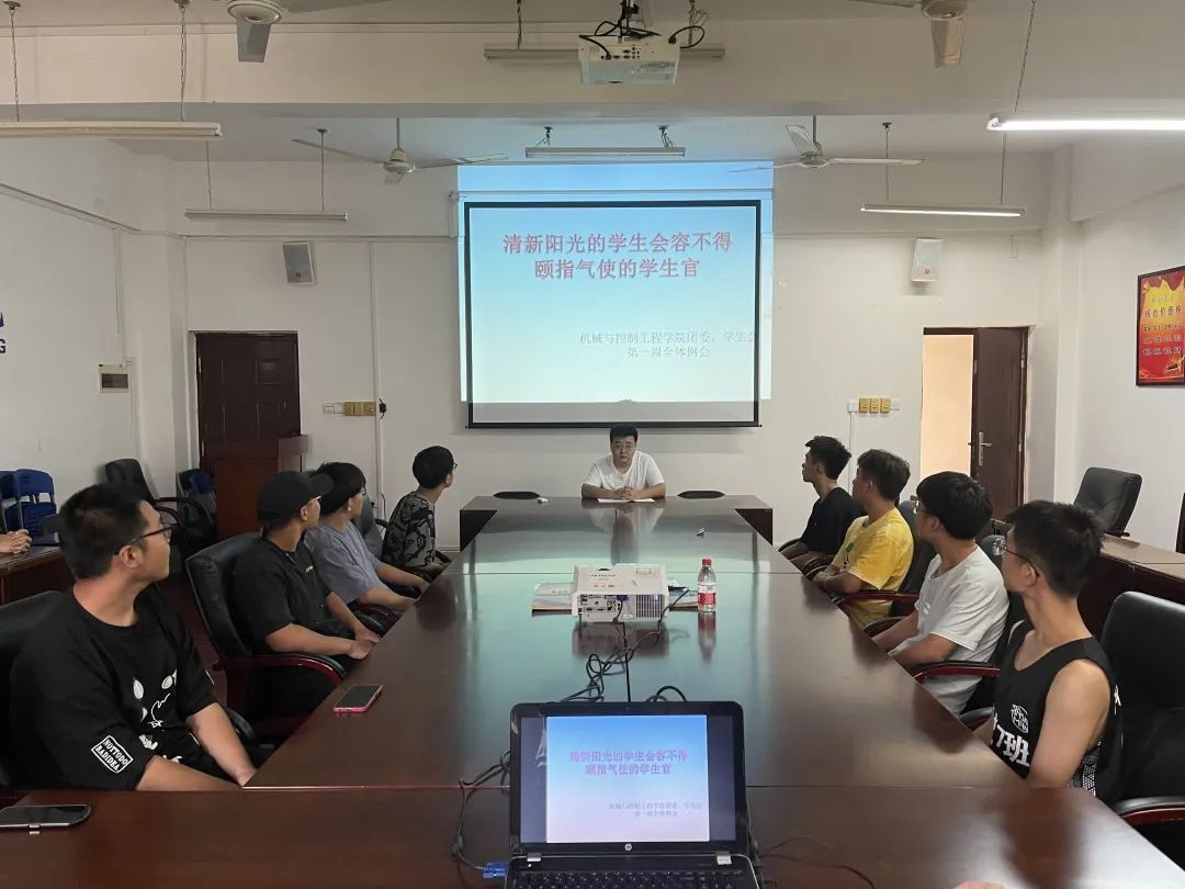 为避免此类现象在学院内发生,9月7日下午,学院团委副书记(主持工作)于帅帅老师在07215会议室召开了机械与控制工程学院第一周全体例会,强调了清新阳光的学生会容不得颐指气使的“学生官”,要对学生会干部不良作风坚决说不!