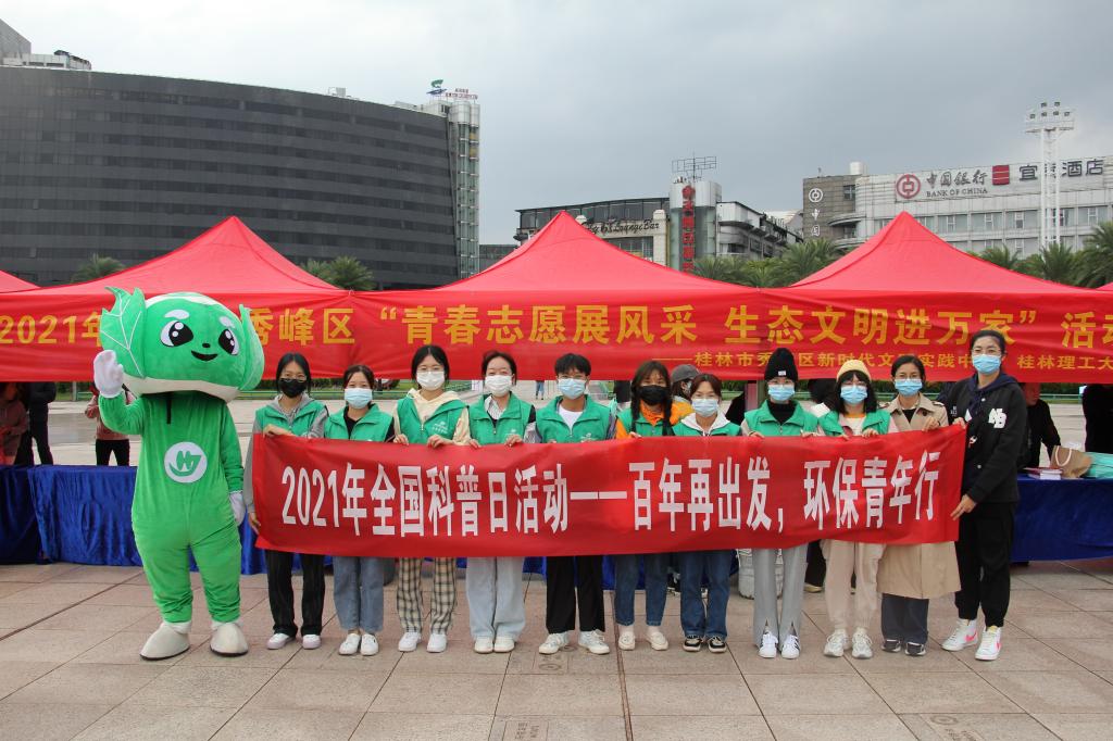10月13日下午,环境科学与工程学院组织学生44118太阳成城集团队前往桂林市中心广场参加2021年桂林市秀峰区“青春志愿展风采,生态文明进万家”活动。