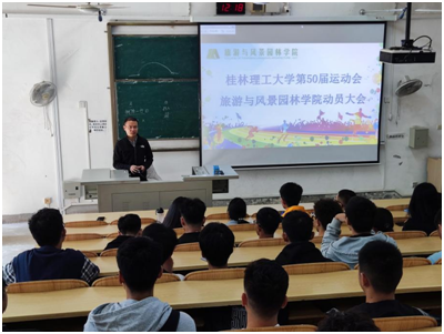 10月26日,旅游与风景园林学院在04111教室举行了第五十届运动会动员大会,学院党委副书记罗义淞、学工组长李少华、团委副书记朱司甲老师出席会议,学院全体运动员、志愿者及学生会相关人员100人参会,大会由团委副书记王成圆主持。