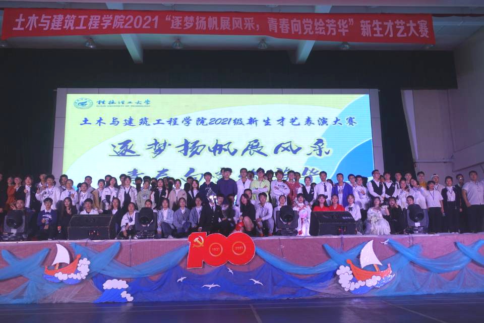 10月30日晚,土木与建筑工程学院于雁山校区体育训练馆举办“逐梦扬帆展风采,青春向党绘芳华”新生才艺大赛。本次大赛邀请到土木与建筑工程学院党委副书记唐丽华、学工组组长夏勇超、团委副书记安邦国以及各年级辅导员参加活动并担任此次大赛的评委,同时邀请到校艺术团代表与各学院学生会文艺部代表与2021级新生前来观看本次比赛。