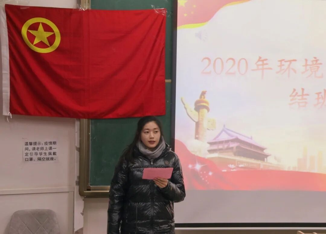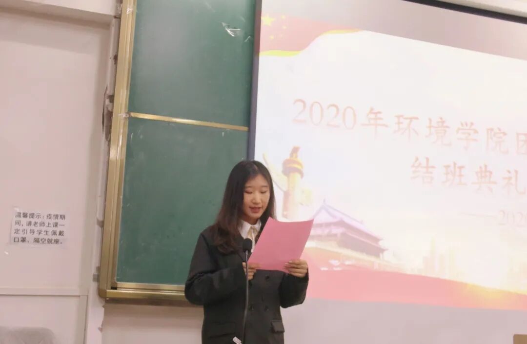 活动在学员们铿锵有力的国歌声拉开帷幕,紧接着王媛老师对本次结业典礼进行总结,肯定了本次青马工程培训班的积极作用,也相信每一位学员都能在青马工程培训的学习过程中扩充知识储备,提高思想境界,希望每一位同学都能胸中有目标,脚下有行动,时刻鞭策自己,经受住各方面的考验,将困难、挑战看成是磨炼自己的竞技场,知难而进,愈挫愈勇,在自己人生的大学阶段谱写出一曲成功的乐章。随后,环境学院张美悦同学作为学生代表上台发言,对环境学院团委开设一个学习团、了解团的培训班表达了衷心的感谢,并表示希望同学们能不负期望,把在青马工程培训中学到的知识技能运用到今后的学习和生活中,提升自己,建设好班集体。在全体成员齐唱了激昂的《光荣啊!中国共青团!》后,环境科学与工程学院2020年青马工程培训班结业典礼完美收官。