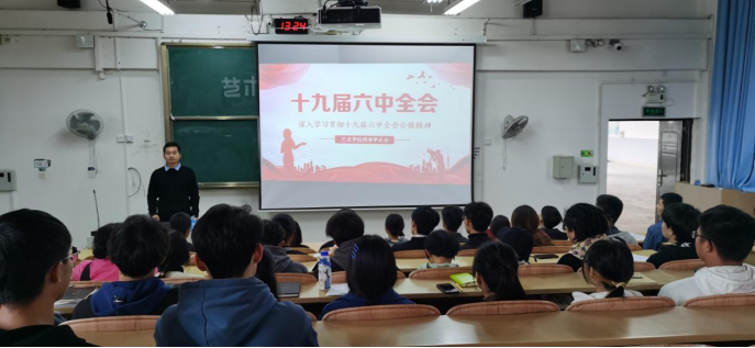 11月8日至11日中国共产党第十九届中央委员会第六次全体会议在北京召开,艺术学院组织团委、学生会干部、预备党员、入党积极分子深入学习党的十九届六中全会公报,会议由艺术学院团委书记曹权玺主持。
