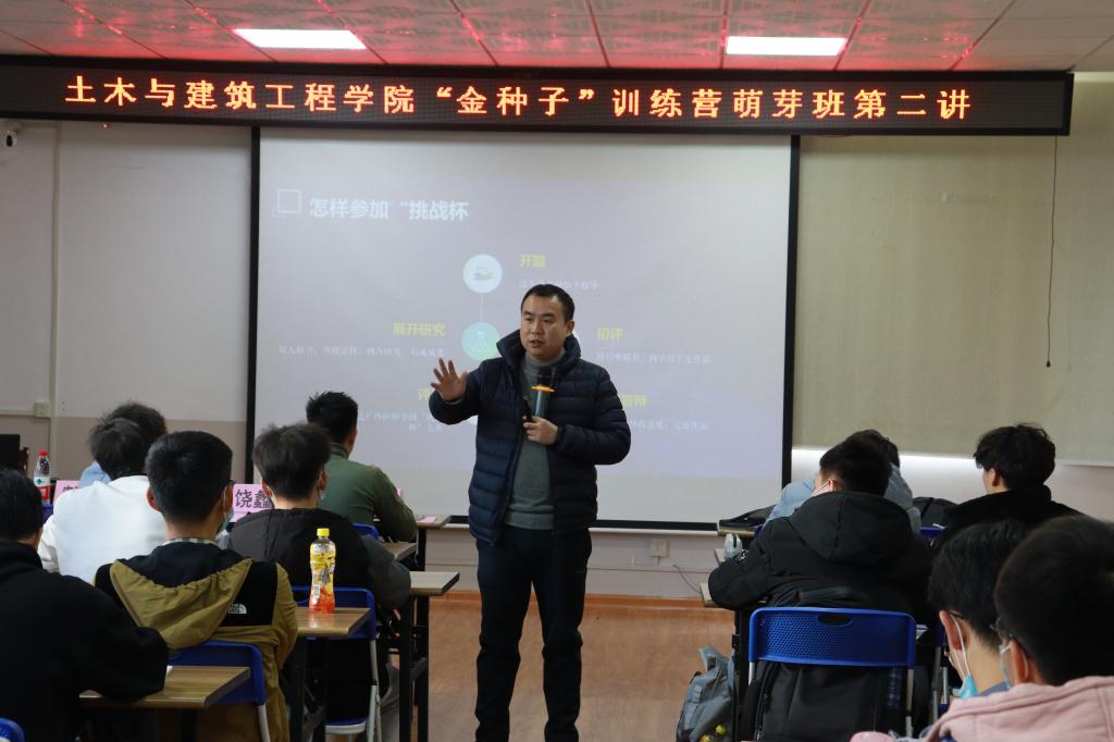 12月19日上午,土木与建筑工程学院第一期创新创业“金种子”训练营萌芽班第二讲于屏风校区4203会议室顺利开讲。本次课程由学校团委副书记饶蠡老师进行授课,辅导员谢基柱老师主持。